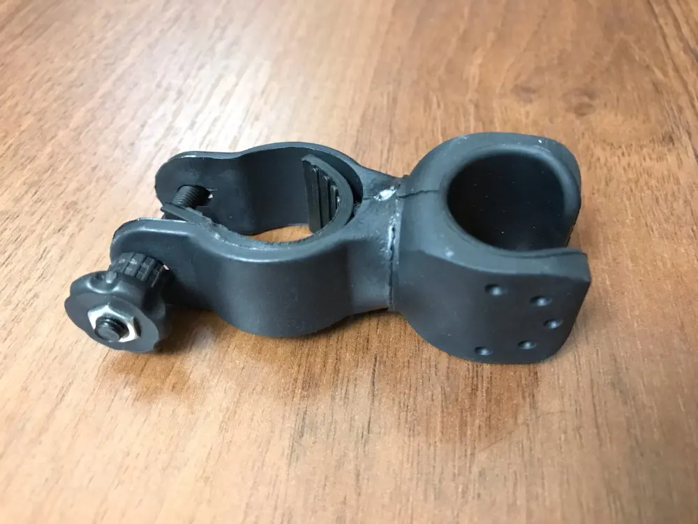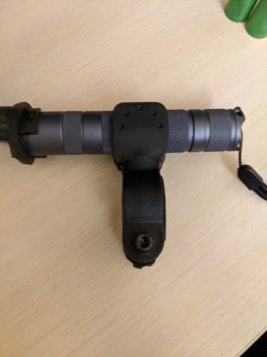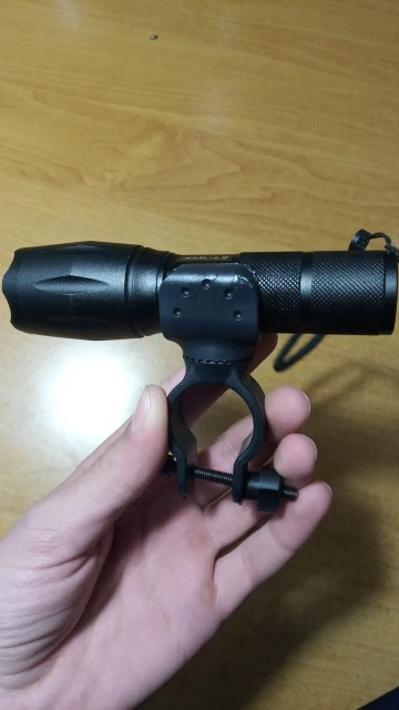 Это второй такой кронштейн. Первый потерял когда жестко упал ночью. Отлично держит такой тяжелый фонарик как этот - Мощный светодиодный фонарь G700 Cree XML T6 L2. За свои деньги отличное предложение.