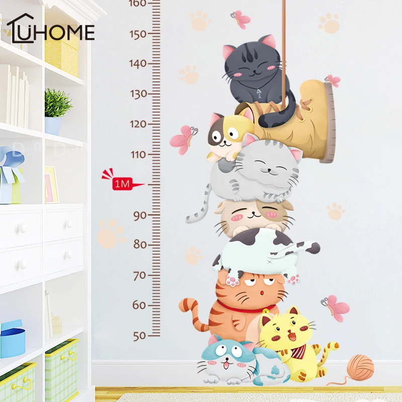 Мультяшная кошка, животные, мерные наклейки на стену для детской комнаты, детского сада, диаграмма высоты, линейка, наклейки для детской, домашний декор