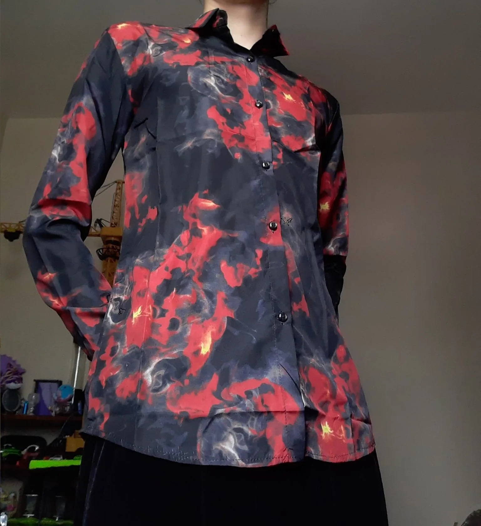 В натуре цвета рубашки не такие насыщенные как на фотографии. Даже на моем фото тоже достаточно насыщенный цвет получается, а так цвета более блеклые! Кое-где нитки торчат (болтаются), не отрезанные. А во всем остальном все хорошо.