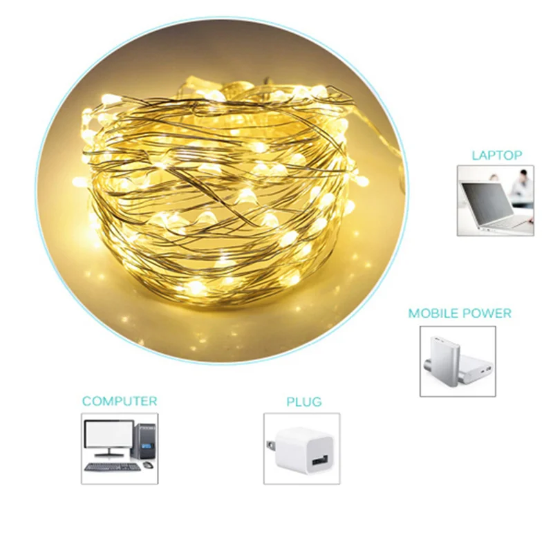 Светодиодный Сказочный светильник s 10 м 20 м из серебристой, медной проволоки с USB струнным светильник на открытом воздухе Рождественская елка украшение для свадебной вечеринки многоцветная гирлянда