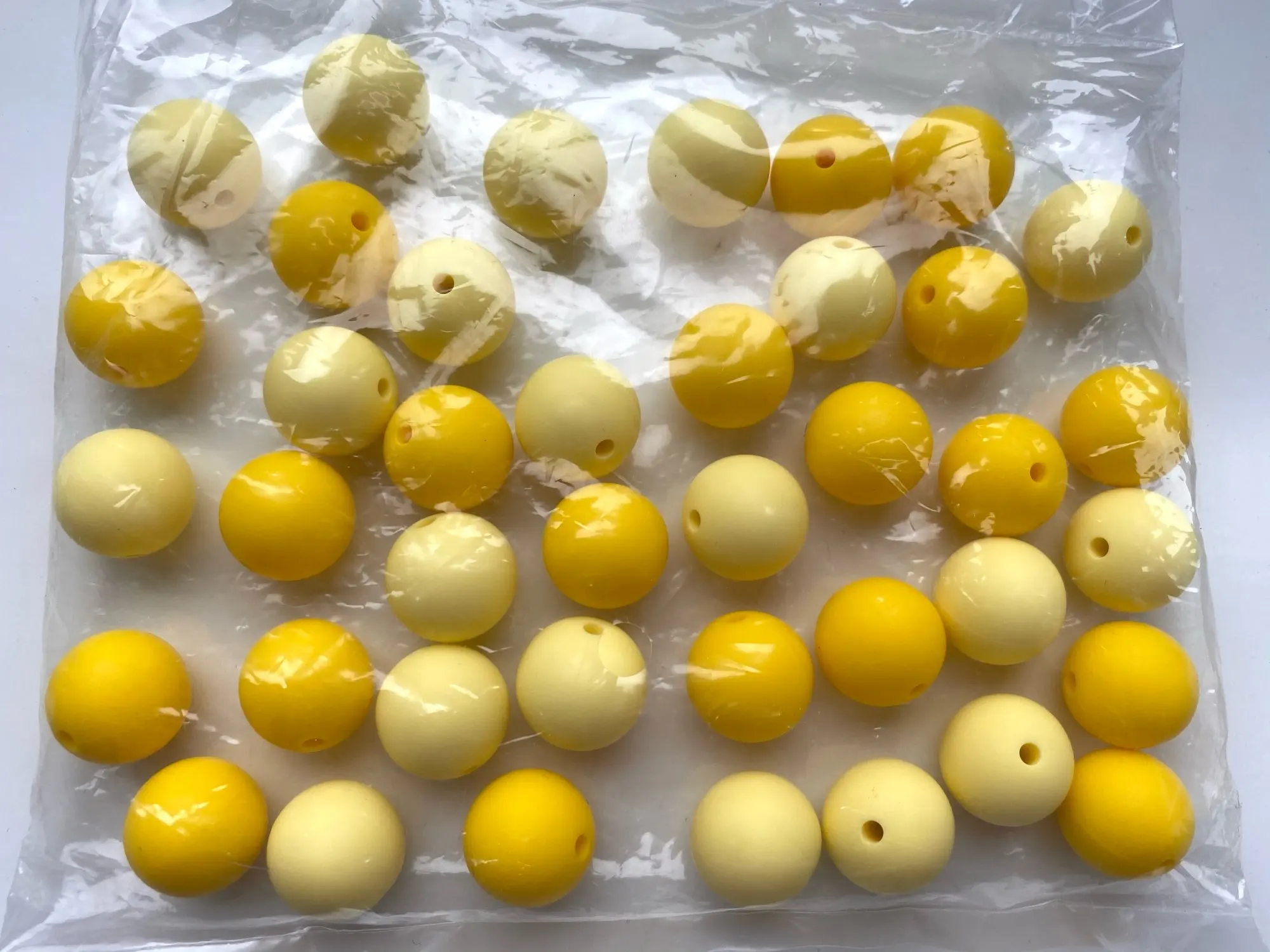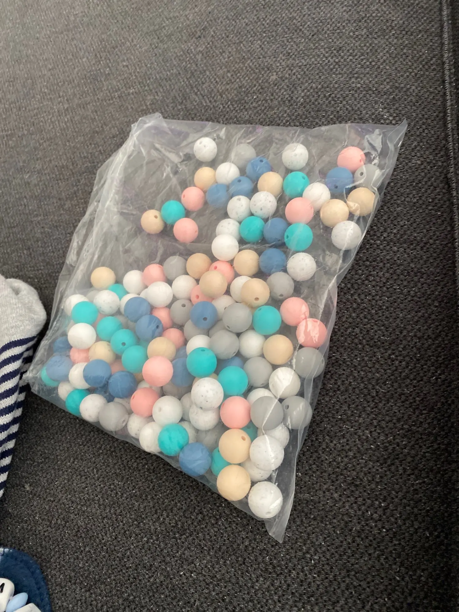 Хорошие крупные бусины! Пахнут резиной. Жаль, что шнурок пролезет только самый тоненький, не так безопасно, если использовать как слингобусы для малышей