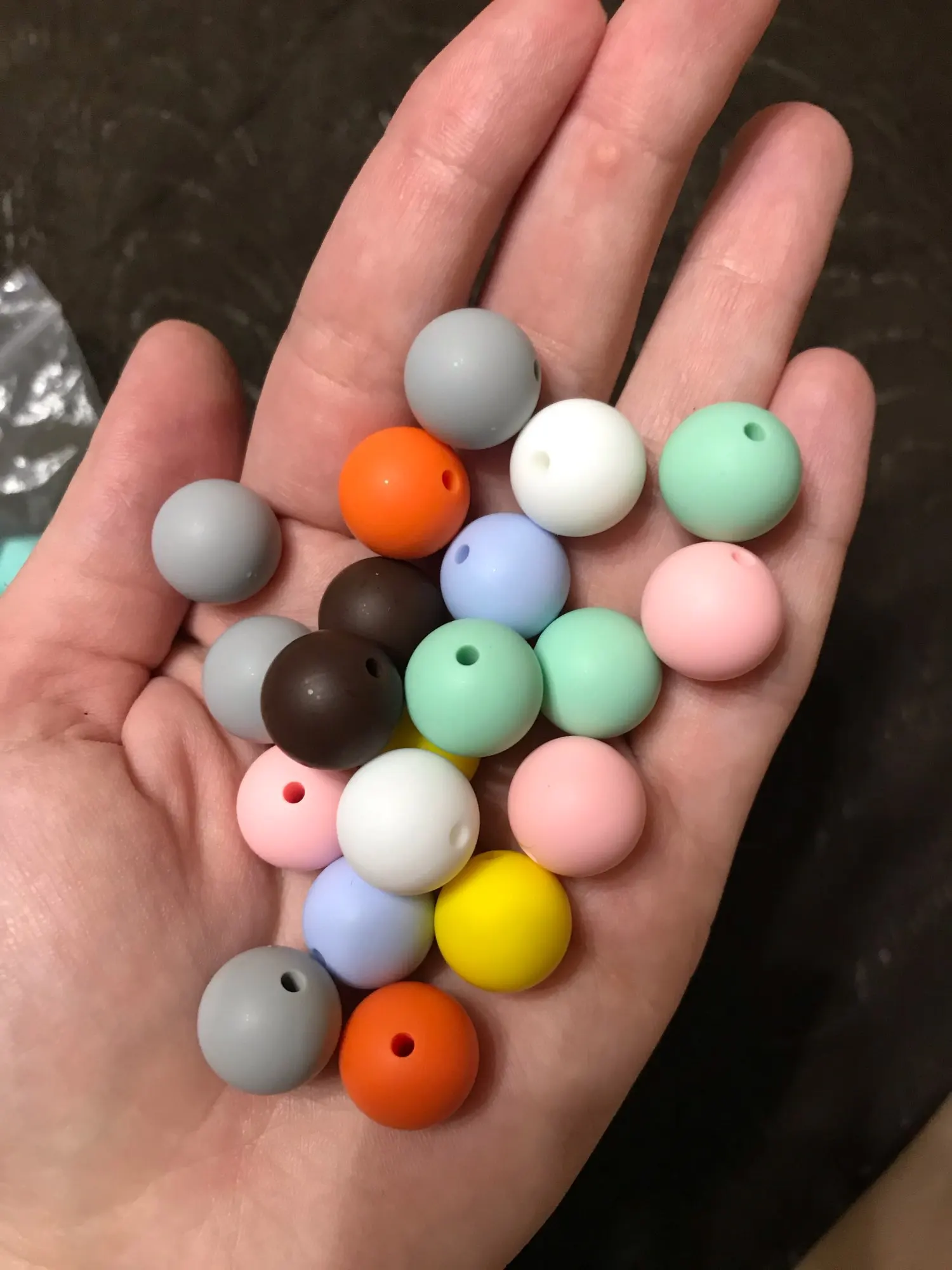 LOFCA 15 мм 20 шт.лот силиконовые бусины россыпью безопасный Прорезыватель для зубов круглые детские бусины для прорезывания зубов сделай сам жевательные цветные Прорезыватели для младенцев
