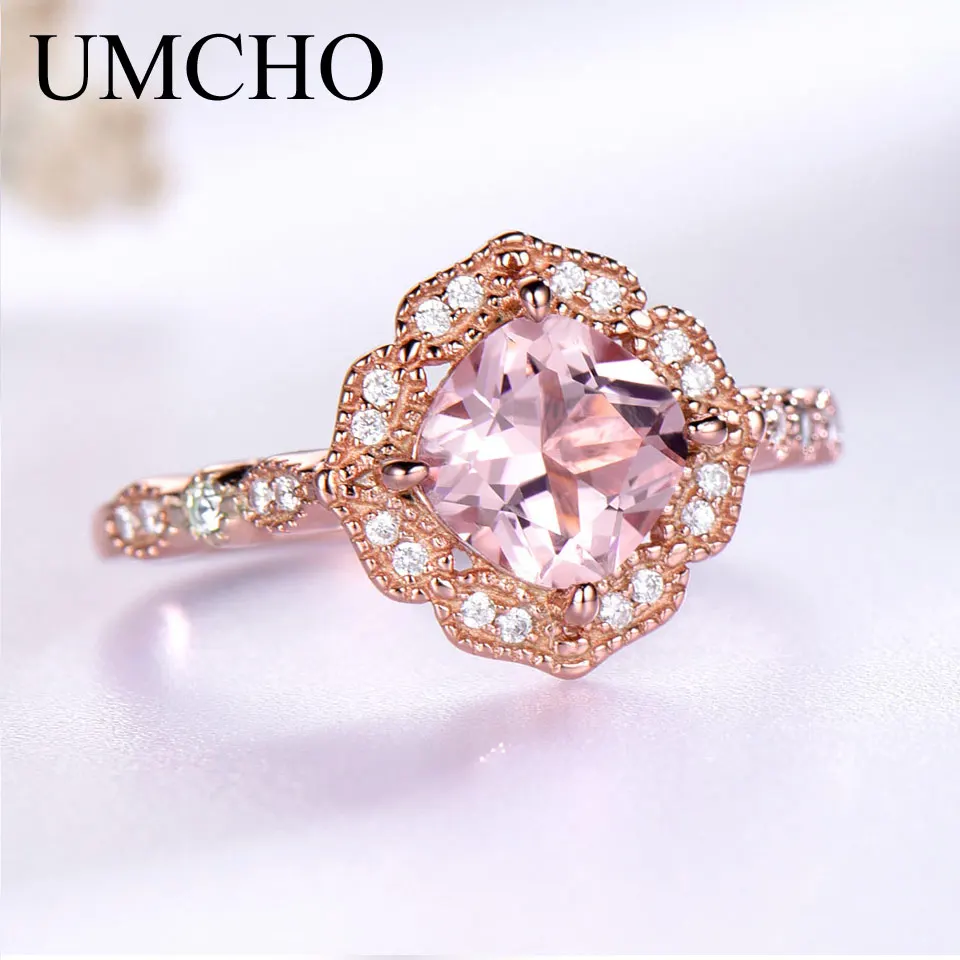 UMCHO, цельная Серебряная подушка из морганита, кольца для женщин, ...