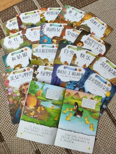 Книга на китайском и английском языках, 20 книг, классические сказки с китайскими иероглифами, книга Хань Цзы для детей от 0 до 9 лет