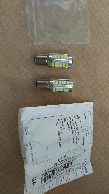 Все доехало до СПб где-то за месяц. Брал в стопы, задний ход и поворотники. Поворотники моргают четко, не быстро, яркие. Задний ход светит холодным ярким белым. Стопы оказались чуть темнее, чем лампы накаливания (брал красный)(3 фото слева-лампа накаливания-справа лед). На Ладу цоколь чуть выше получается, тем самым ставятся только с колхозом, а так за свои деньги-пойдёт