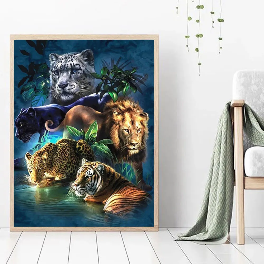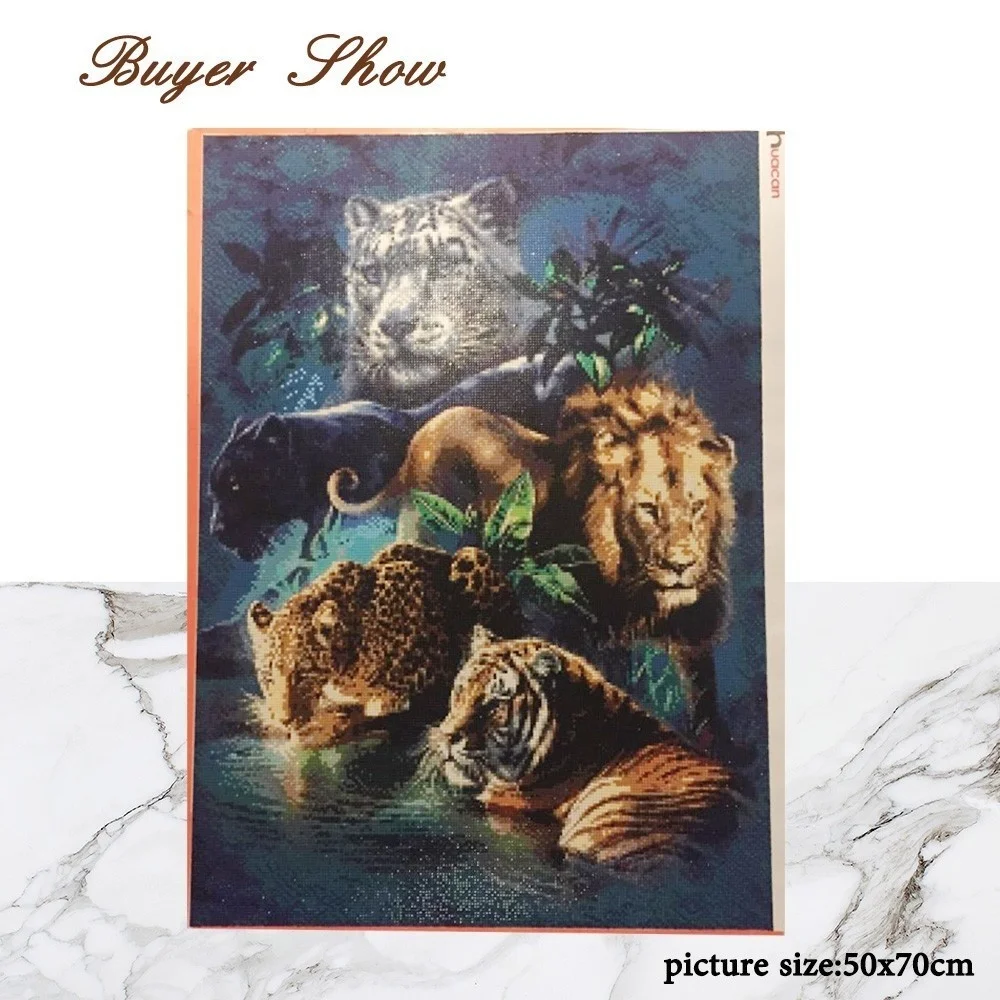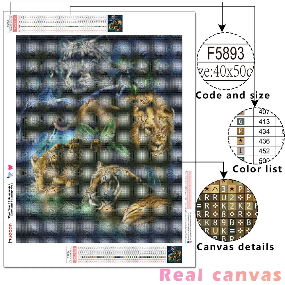HUACAN 5d алмазная картина тигр Diy Алмазная мозаика полное квадратное украшение дома леопардовая Алмазная вышивка со львом животные
