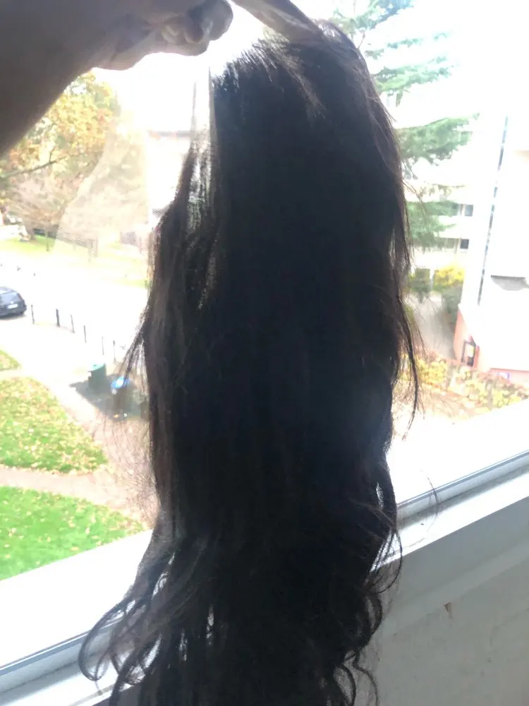 Волосы были повреждены 22 декабря. Леди нужно было некоторое время, чтобы сделать парик, и это не было проблемой для меня. Получили волосы 11 января. Парик очень мягкий. Я заказываю 20 дюймов, и мне кажется, что он короче. Леди решила это для меня, и я снова закажу разные волосы
