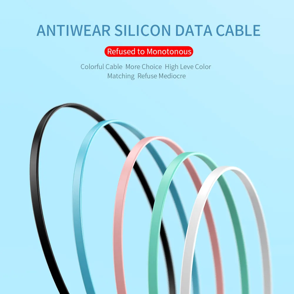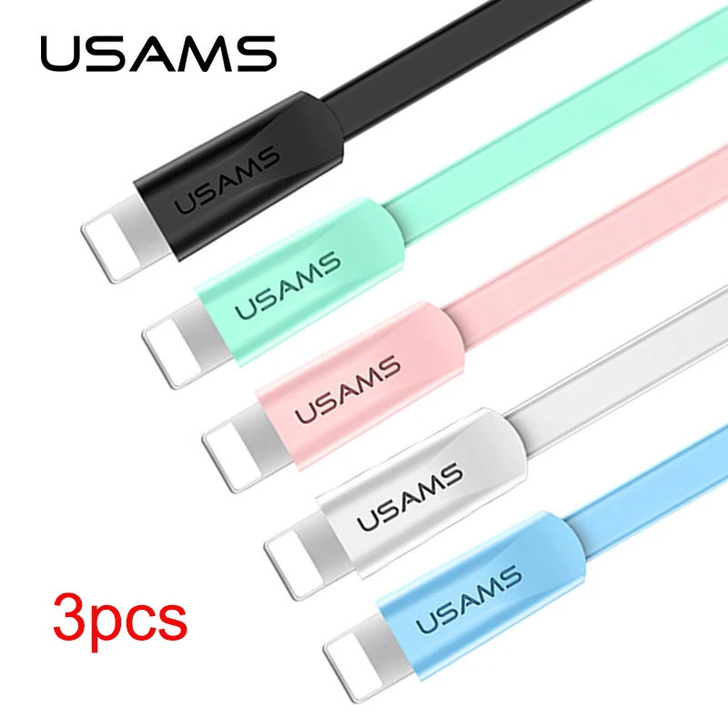 USAMS 3 шт. U2 1,2 м 2A плоский USB от A к Lightning Type C Micro USB телефонный кабель для iPhone Huawei Xiaomi Samsung кабель синхронизации данных