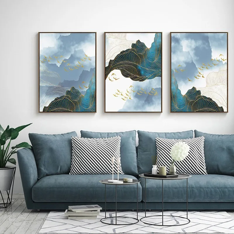 3 шт., настенные картины на холсте с абстрактным пейзажем