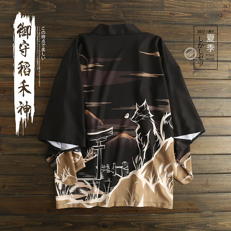 Японский свободный халат Fushimi Inari Patronus эскиз темно-черного цвета haori летнее солнцезащитное кимоно для косплея литературы и искусства