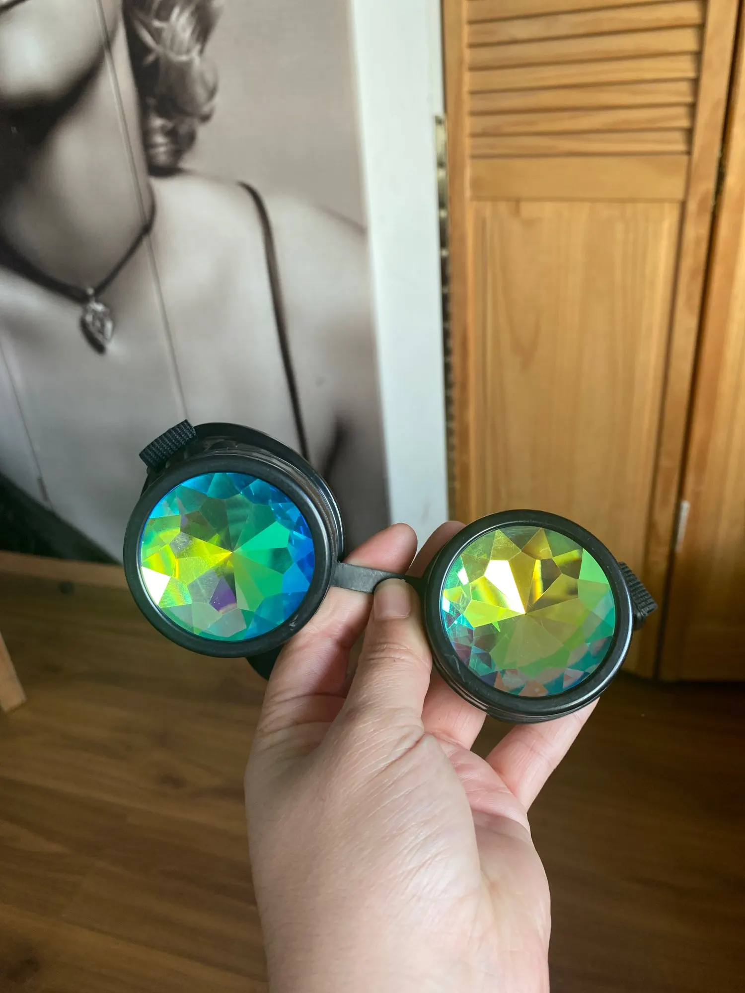 Лидер продаж, калейдоскоп, радужные хрустальные линзы, очки в стиле стимпанк, очки EDM, готические очки для косплея, винтажные очки для Хэллоуина