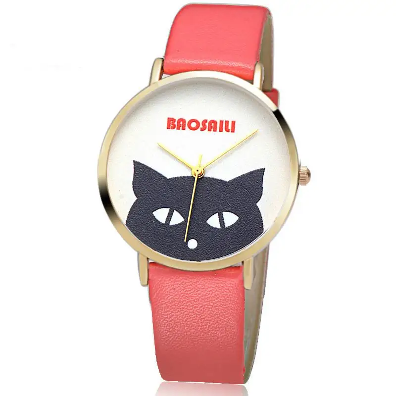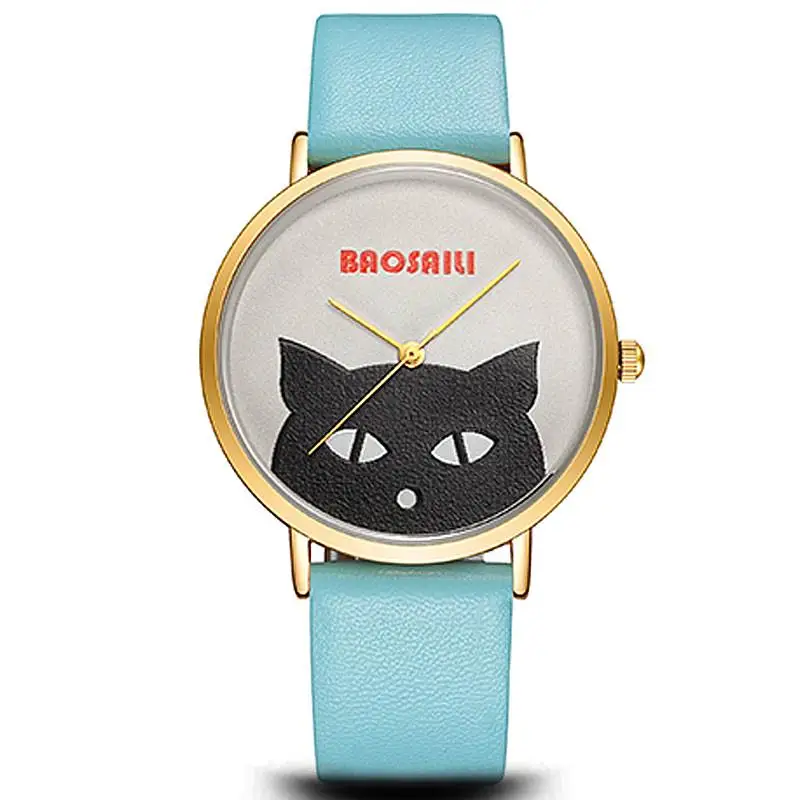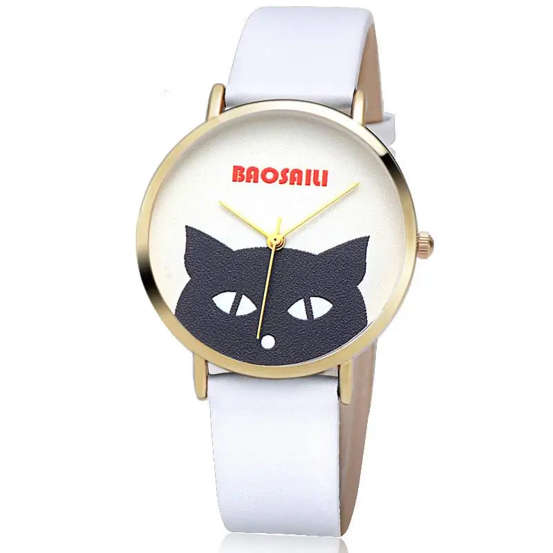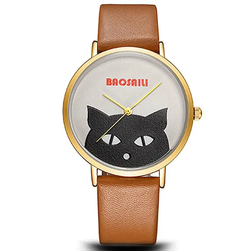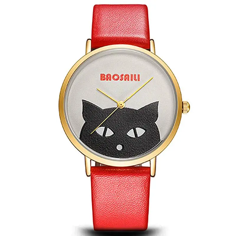 С изображением головы черного кота наручные часы водонепроницаемые для женщин
