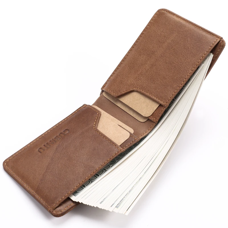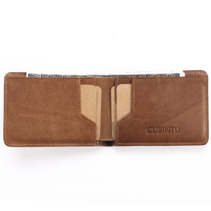 Тонкий двойной кошелек GUBINTU с рчид-блокировкой, винтажный тонкий бумажник с зажимом для денег и защитой карт, Карманный Кошелек для мужчин