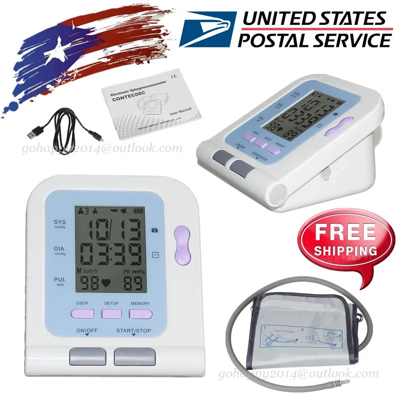 Цифровой ЖК-дисплей CONTEC08C, верхняя модель, измеритель сердечного ритма, продавец из США с манжетами для взрослых