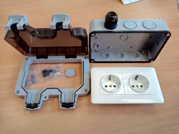 Качество коробки очень хорошая. Сома розетка внушает доверие, все детали сделаны чётко. Рамка розетки чуть велика и не входит плотно в корпус крышки от коробки. Это можно легко исправить! В целом на первый взгляд я доволен покупкой. IP66 поддерживается 100 процентов. Если товар будет хорошо служить в практике надо будет заказывать ещё. Доставка 20 дней! Продавцу Пять!