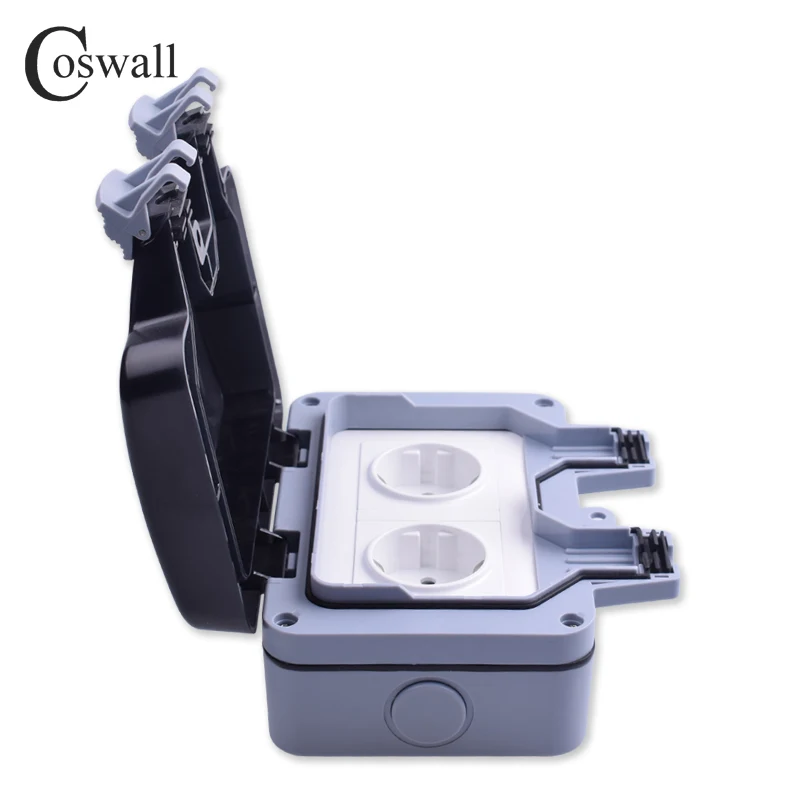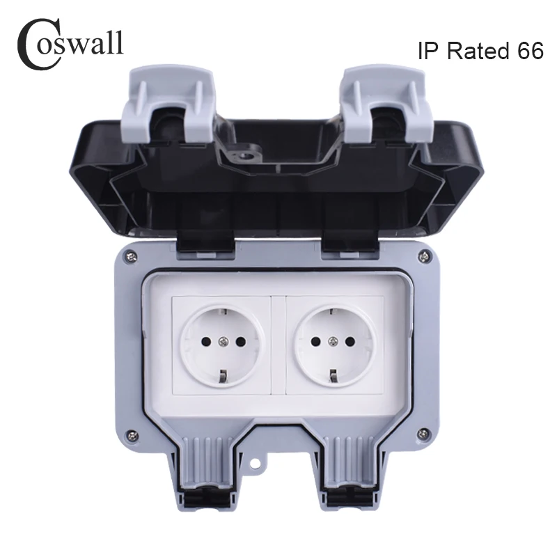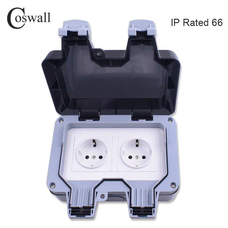 Погодостойкая Водонепроницаемая уличная настенная розетка Coswall IP66, 16 А, двойная Европейская стандартная электрическая розетка с заземлением, 110 250 В переменного тока