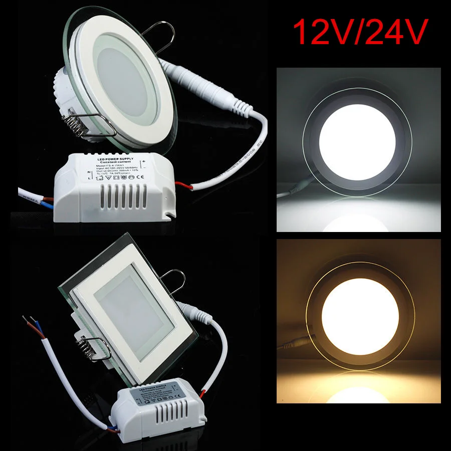 AC/DC 12 В 24 В Светодиодная панель 6 Вт 9 Вт 12 Вт 18 Вт 24 Вт Светодиодный светильник встраиваемый стеклянный светильник круглый/квадратный панельный светильник Бесплатная доставка