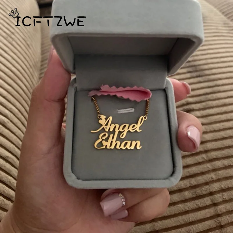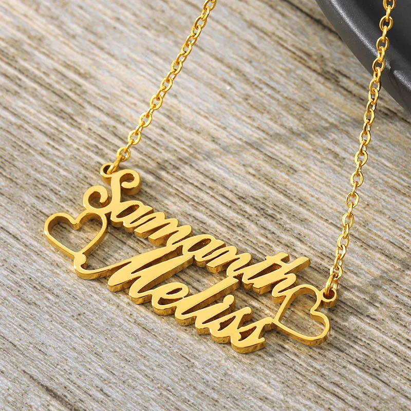 Изготовленное на заказ ожерелье с двойными именами для женщин, персонализированная золотая цепочка из нержавеющей стали, подвеска, ожерелье, праздничное ювелирное изделие, подарок, bijoux femme