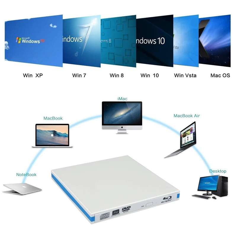 Внешний оптический привод Bluray USB3.0, 3D проигрыватель, BD-RE, Запись DVD +-RW DVD-RAM для ноутбуков и Mac