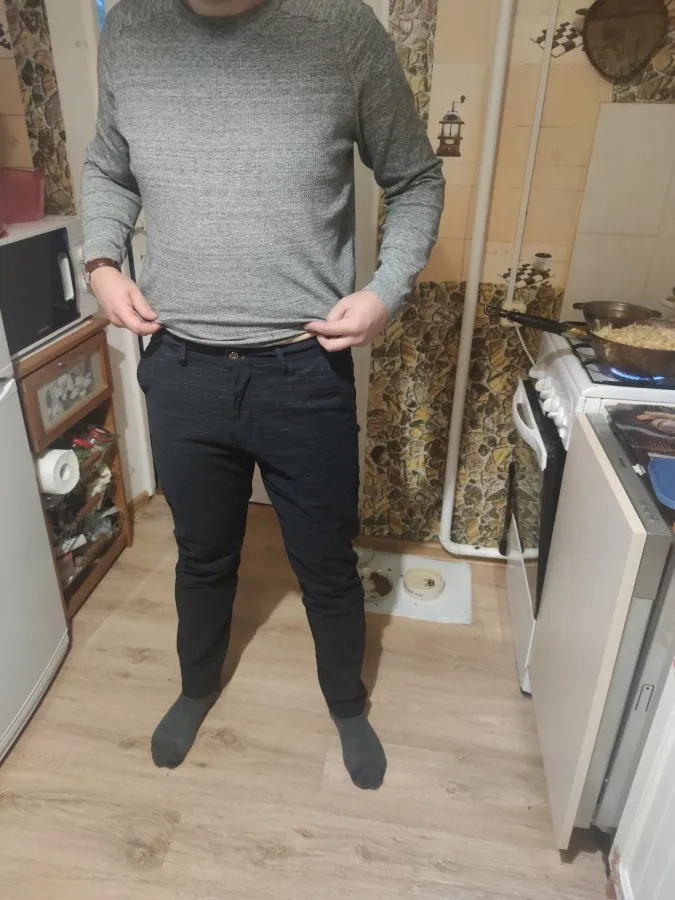 Идеальные брюки-брюки. Мой муж любит его. Отл. цена, кач-во. Мой муж, рост 180 см, вес 80 кг. Размер 34 идеально подходит. Нижний край идеален. (Фотографии после холодной стирки) не скручиваются. Ткань достаточно плотная для зимы в Испании. Классный и современный цвет и крой. Посылка хорошо упакована и доставлена в течение 10 дней. Надежный продавец. Спасибо. Процветание в вашем магазине.