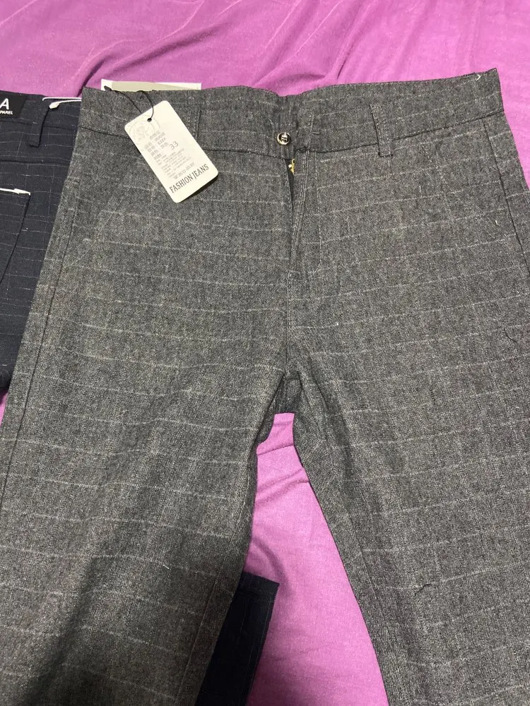 Товар в прекрасном состоянии! К сожалению, они немного узкие, но я заказал 30, так что вы можете заказать на 2 размера больше. Я также заказал черный, и я увидел, что вы почти не видите клетчатый узор .. К сожалению! Но это нормально. Кнопка пластиковая и выглядит так, что ее необходимо заменить в ближайшее время, но это абсолютно нормально. Все товары хорошего качества! К слову-они не очень толстые. Но все в порядке. Рекомендуется!
