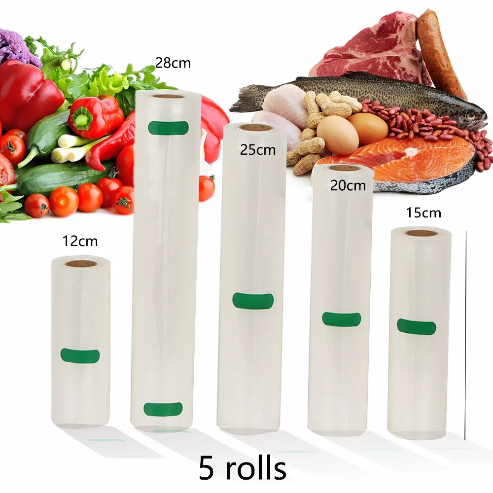 Вакуумные пакеты для пищевых продуктов, 5 рулоновпартия, пакеты для вакуумного упаковщика, рулоны с вакуумной упаковкой, 1215202528 см * 500 см
