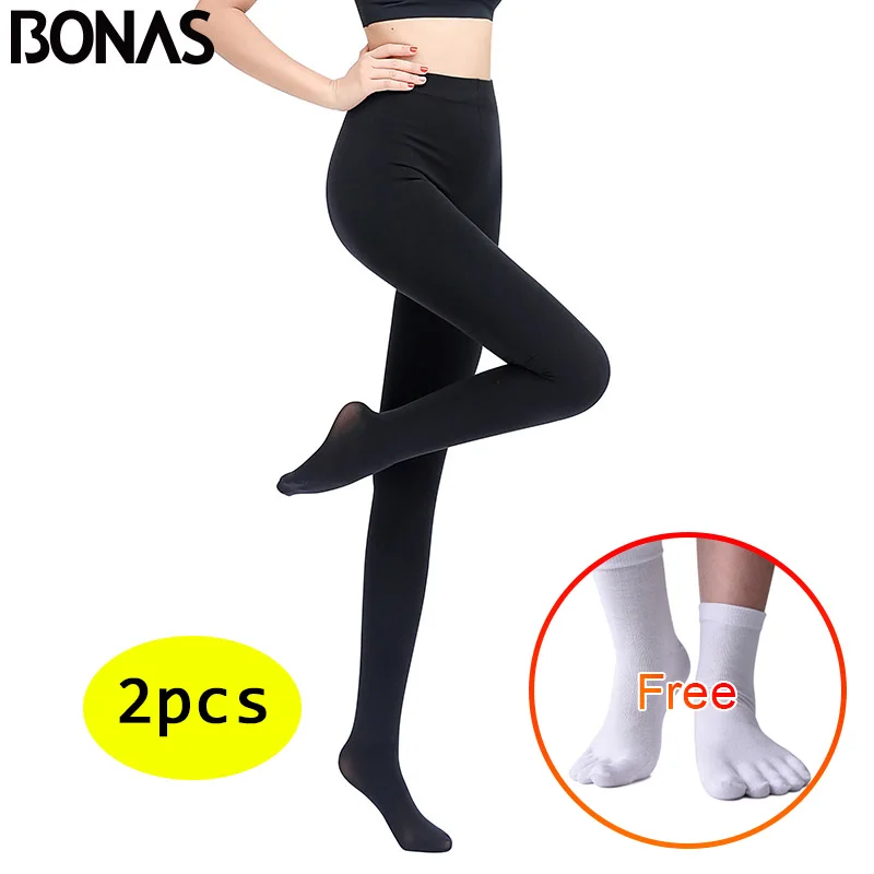 Теплые зимние колготки BONAS 2 шт.лот, получите подарок, женские высокоэластичные колготки, сексуальные осенне-зимние бархатные женские колготки большого размера