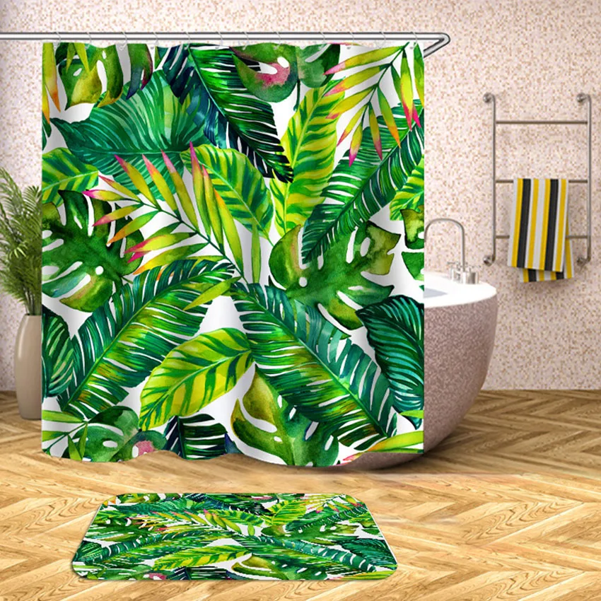 Водонепроницаемая занавеска для душа с тропическими растениями, 12 шт. крючков