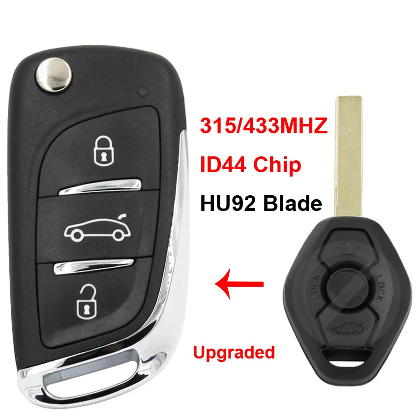 Обновленный складной дистанционный ключ в стиле DS с 3 кнопками, 315 МГц433 МГц, чип ID44, лезвие HU92 для BMW EWS 3 5 7 серии E38 E39 E46 M5 X3 X5