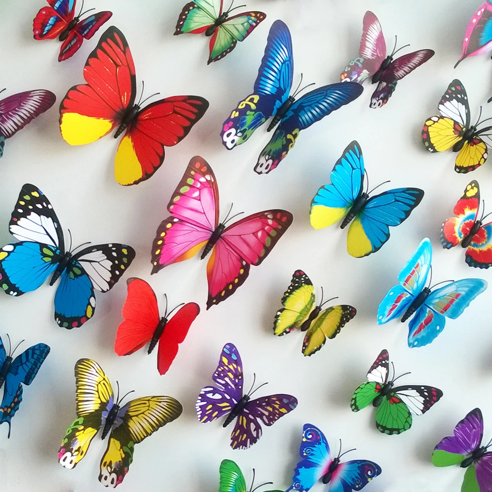 Наклейки на стену с бабочкой, 12 шт., 3D обои, ПВХ, 3D украшение дома, высокое качество, наклейки на стену, 3D обои для гостиной