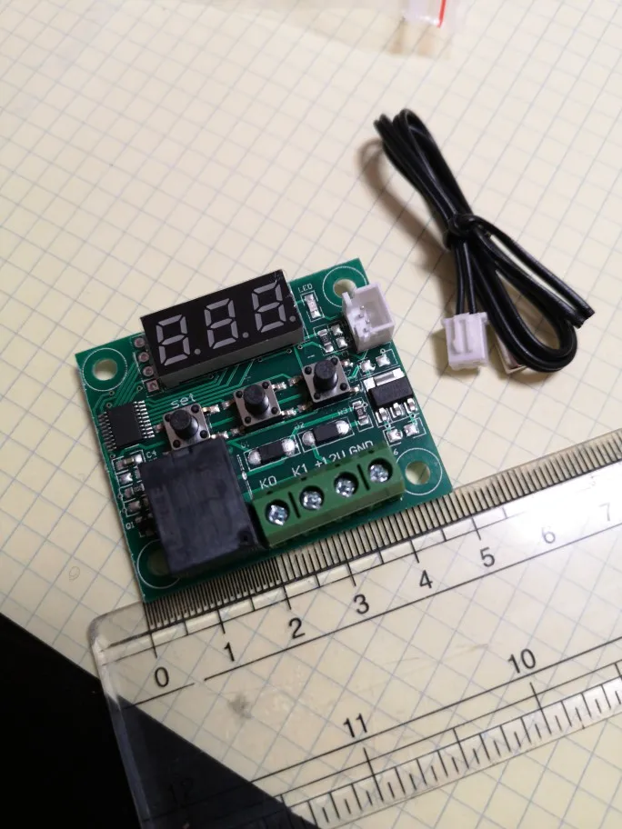 Вполне себе рабочий контроллер, на точность измерения температуры не проверяла. Датчиком измерения похоже служит терморезистор.