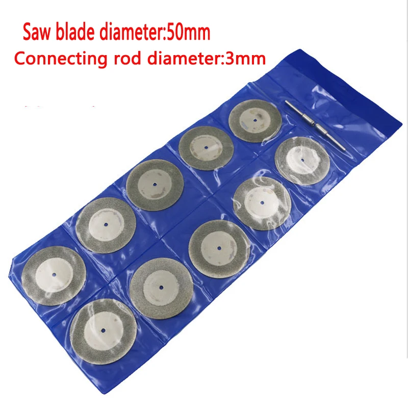 Dongcheng 10 шт.компл. 50 мм Мини Алмазная пила серебряные режущие диски с 2X соединительным хвостовиком для дрели Dremel подходит для вращающегося инструмента