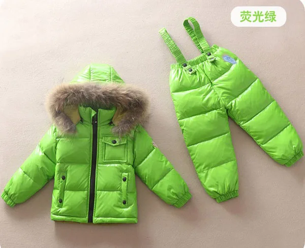 Детские комплекты для русской зимы Детский пуховик детский лыжный костюм с мехом енота для мальчиков и девочек