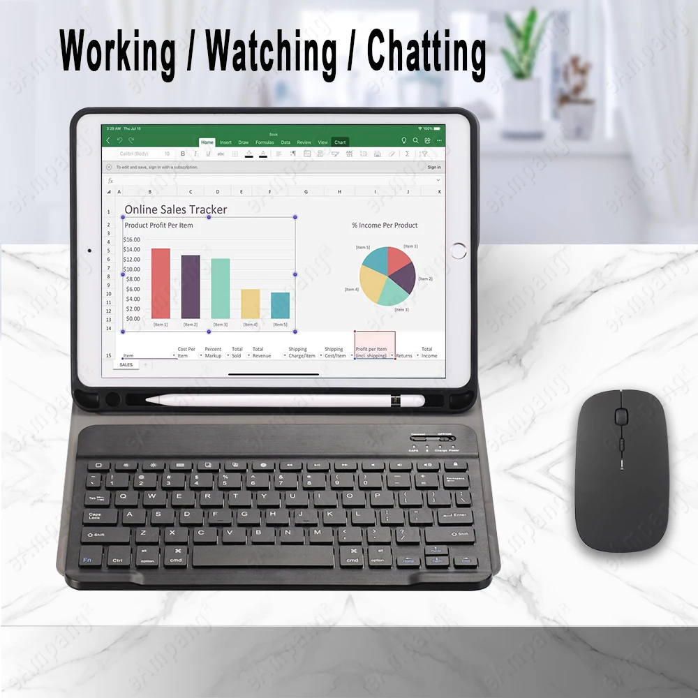 Чехол для iPad 10,2, клавиатура, мышь, iPad Pro 11 Air 4 10,9 Air 3 2 Pro 9,7 10,5 6 7 8 9 поколения 2021, русская и испанская раскладка клавиатуры