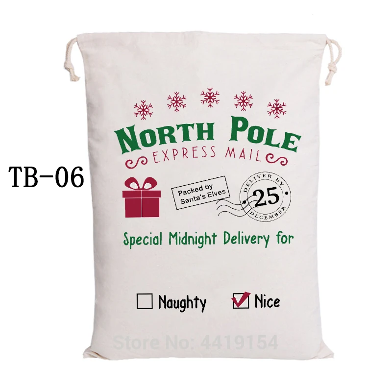 50 шт.лот большие мешки Санта Клауса рождественские мешки на шнурке 38 стилей рождественские тканевые мешки детские подарочные мешки мешок для конфет тростника оптовая продажа