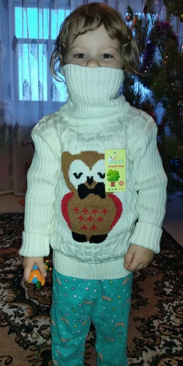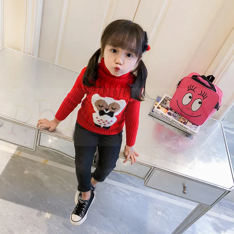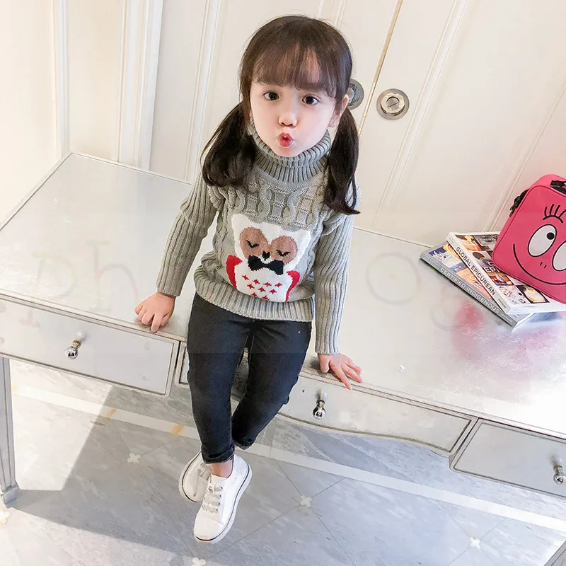 Свитер детский зимний, вязаный, с высоким воротником, с рисунком совы, для мальчиков и девочек, От 2 до 8 лет