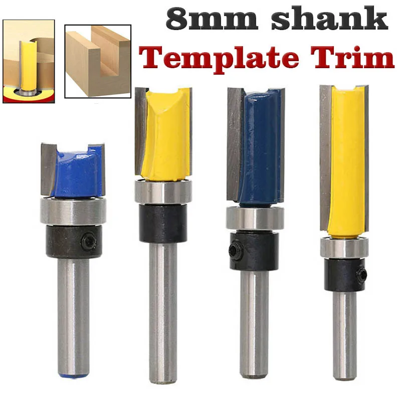 Фреза для деревообработки с хвостовиком 8 мм, 14 дюйма, для древесины, карбида вольфрама, ЧПУ Инструмент, прямая обрезная фреза с подшипником