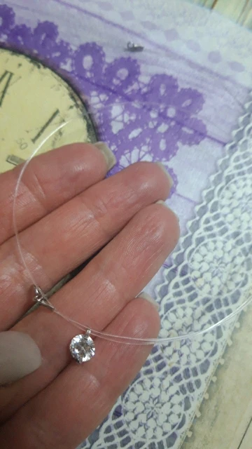 Сомневаюсь, что это серебро. Максимум - покрытие - застёжка примагничиватся, хотя на ней стоит клеймо. Леска длиной 38.5 см, тонкая. Колечко, через которое продета леска очень маленькое, так что если она порвется, надеть на цепочку уже не получится ((