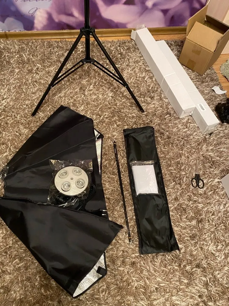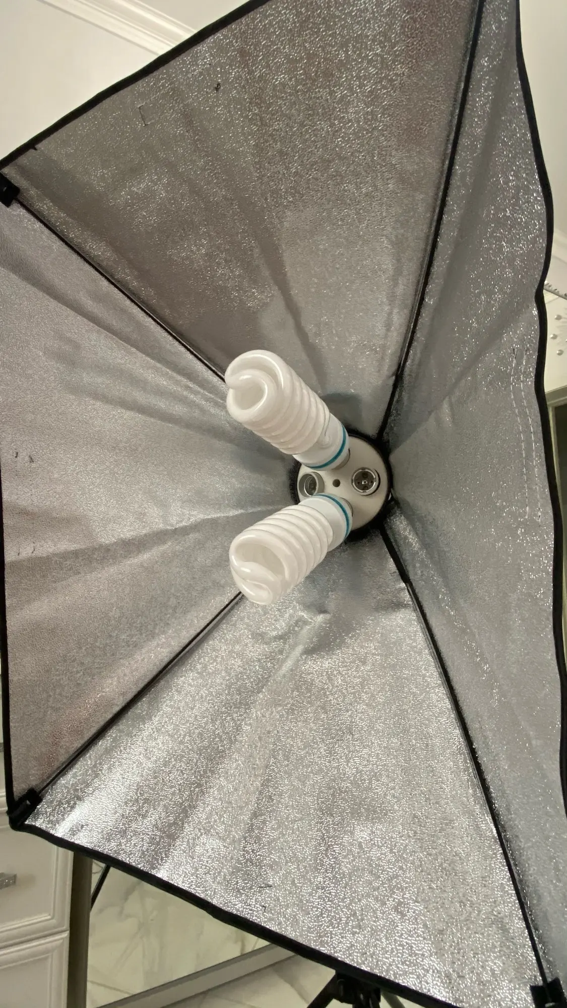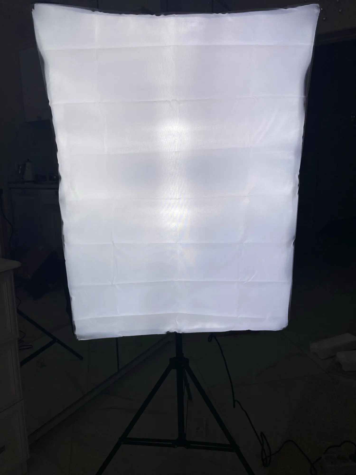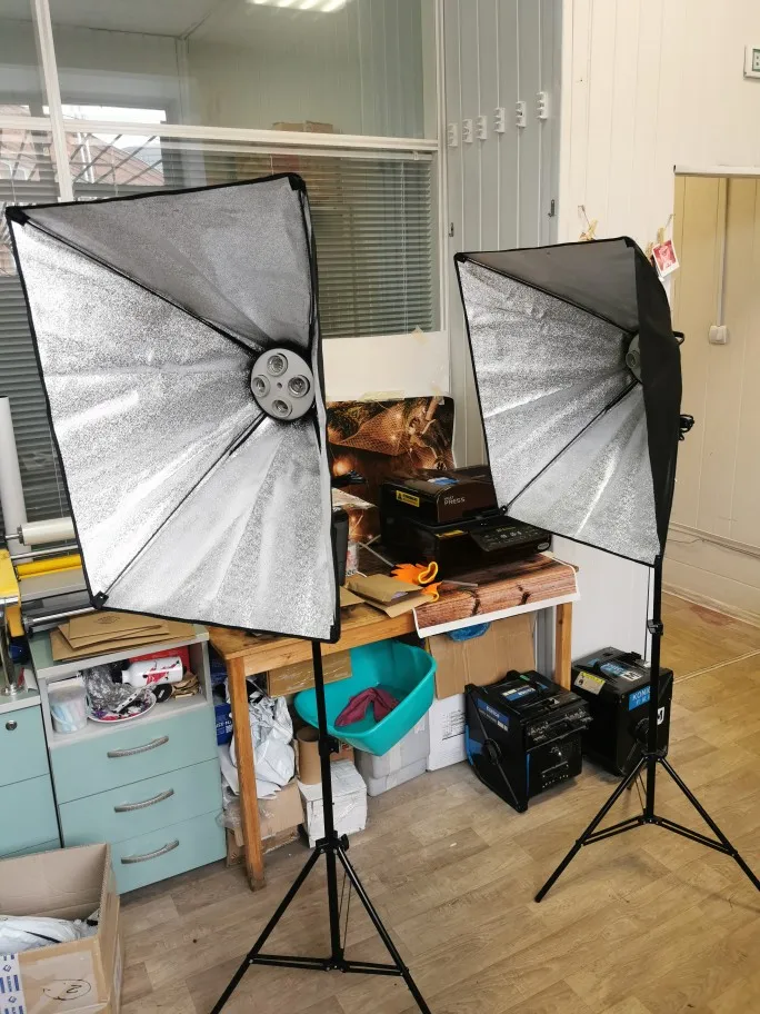 Классная вещь. Я давно хотел купить это. Всë пришло быстро. В комплекте сумка для переноски всего комплекта, плюс отдельные чехлы для софт бокса. Теперь нужно покупать ещё один для подсветки с верху. Вообщем советую, отличная вешь.