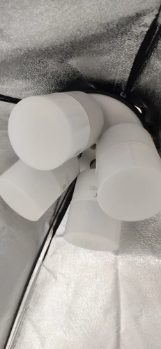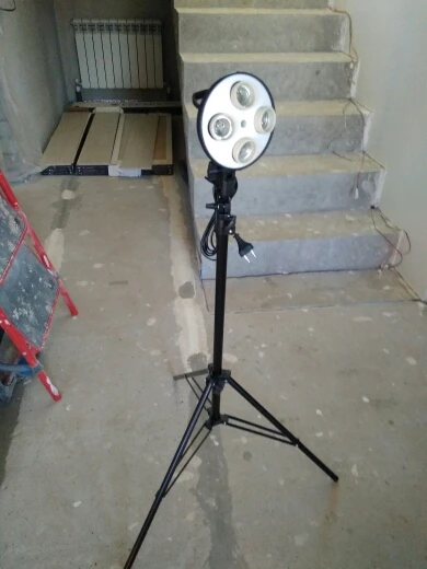 С наносветовскими светодиодными лампочками, купленными на озоне (120), работает прекрасно. Световой поток при необходимости сожжёт и тебя, и фон, и стену позади, но будет исключительно мягким и с хорошей цветопередачей. Из очевидных минусов: немного хлипковаты стойки, тонковат экран, нельзя включать лампочки по одной. Но это более чем оправдывается низкой ценой. Все проблемы решаются аккуратным обращением и подбором изначально матовых лампочек. Из неочевидных минусов (факт скорее удивил и позабавил, чем оказался проблемой): боковой контакт не подведён к резьбе патрона. Приходится дозакручивать 3 из 8 лампочки с ощутимым усилием, чтобы его задеть.