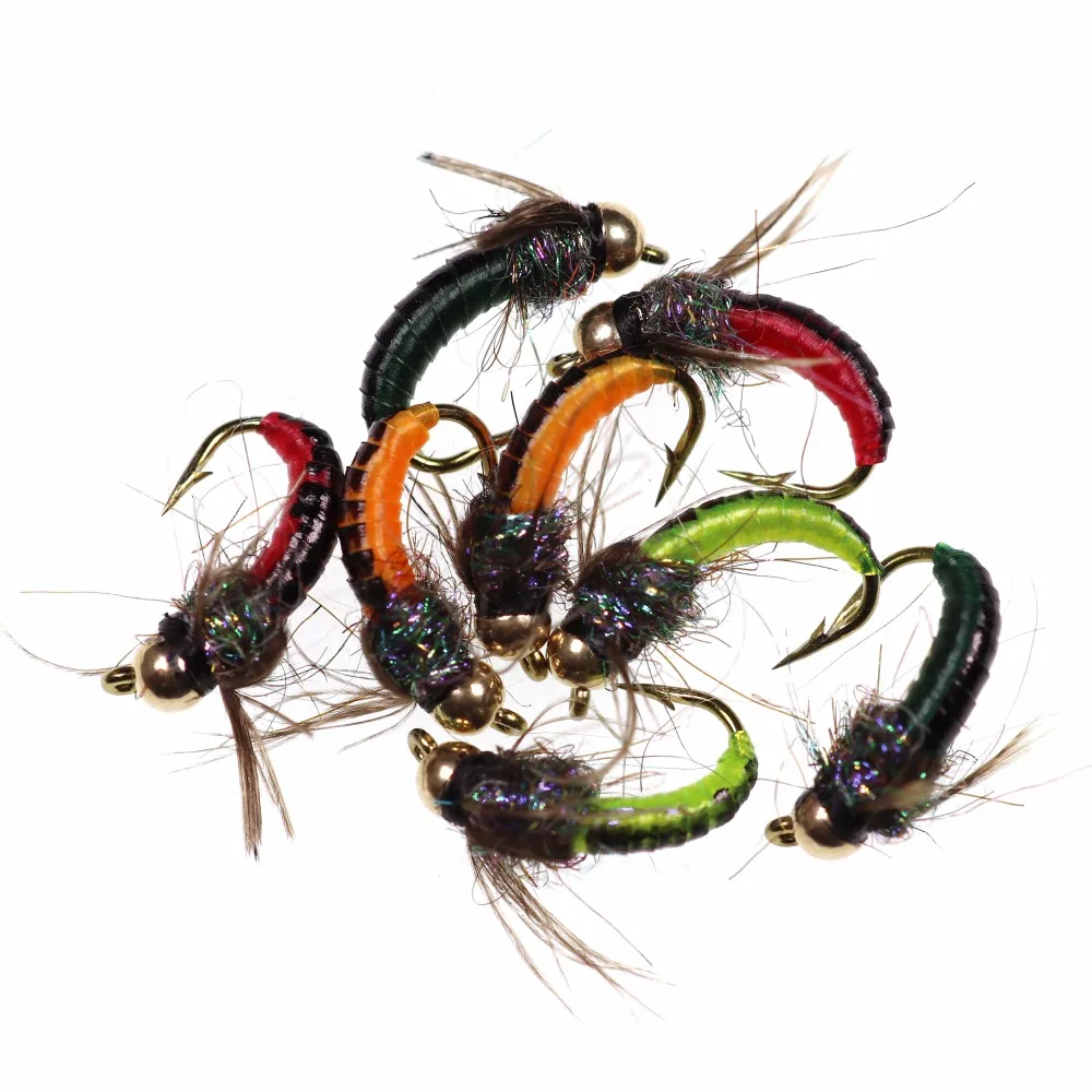 Bimoo 8 шт. #12 #14 латунная бусиновая головка, быстротонущая Нимфа, СКУД, муха, жук, червь, искусственное расстояние