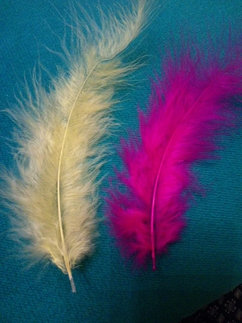 Перышки длинные,нежного цвета. очень милые.