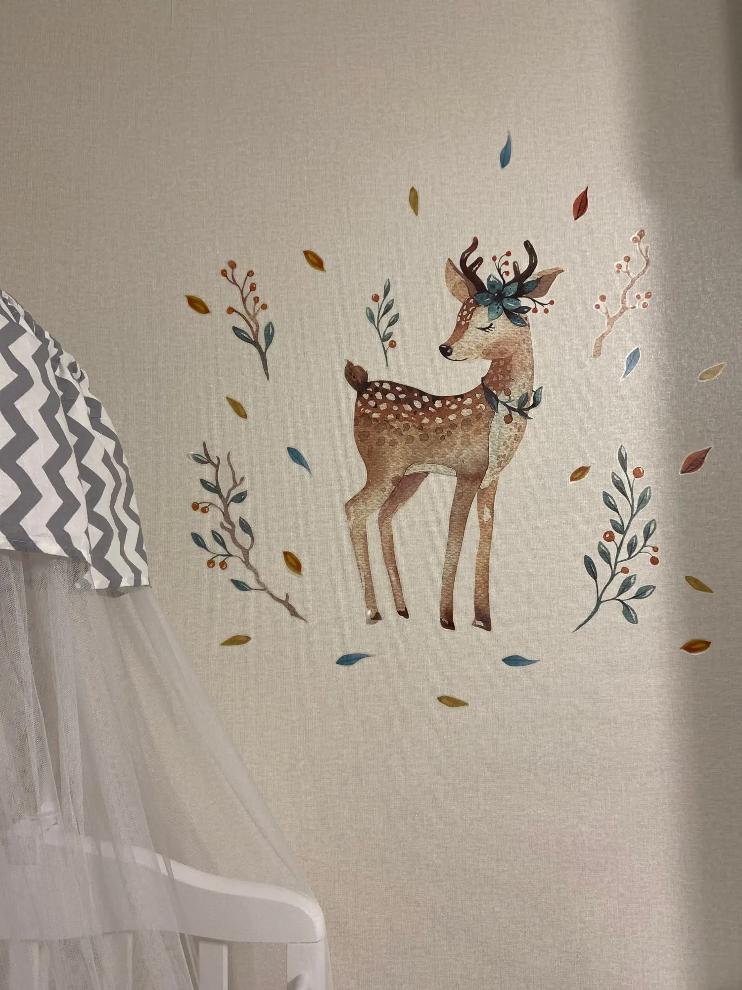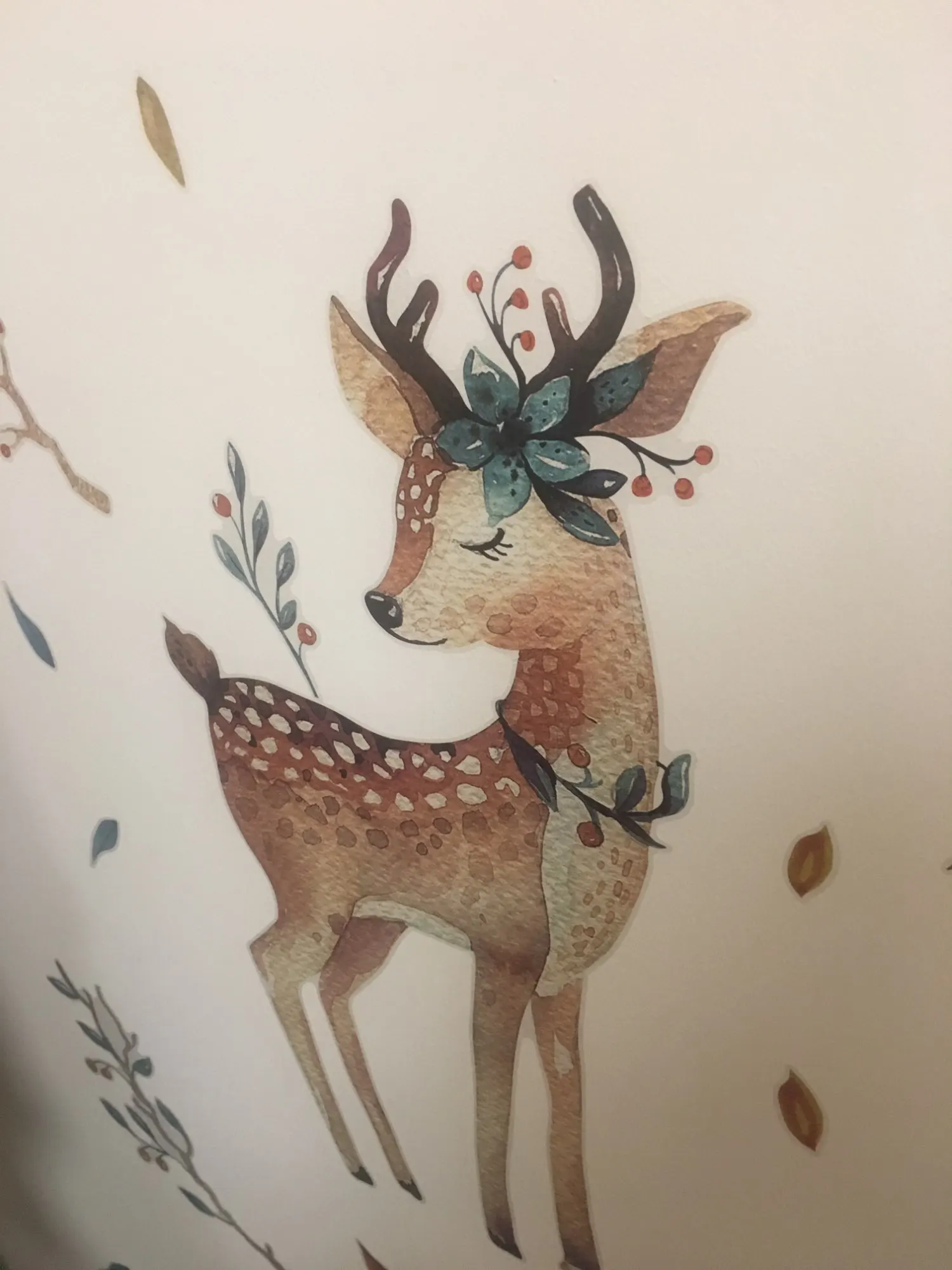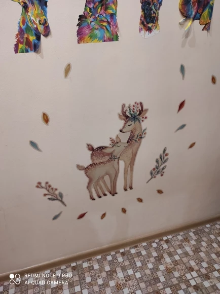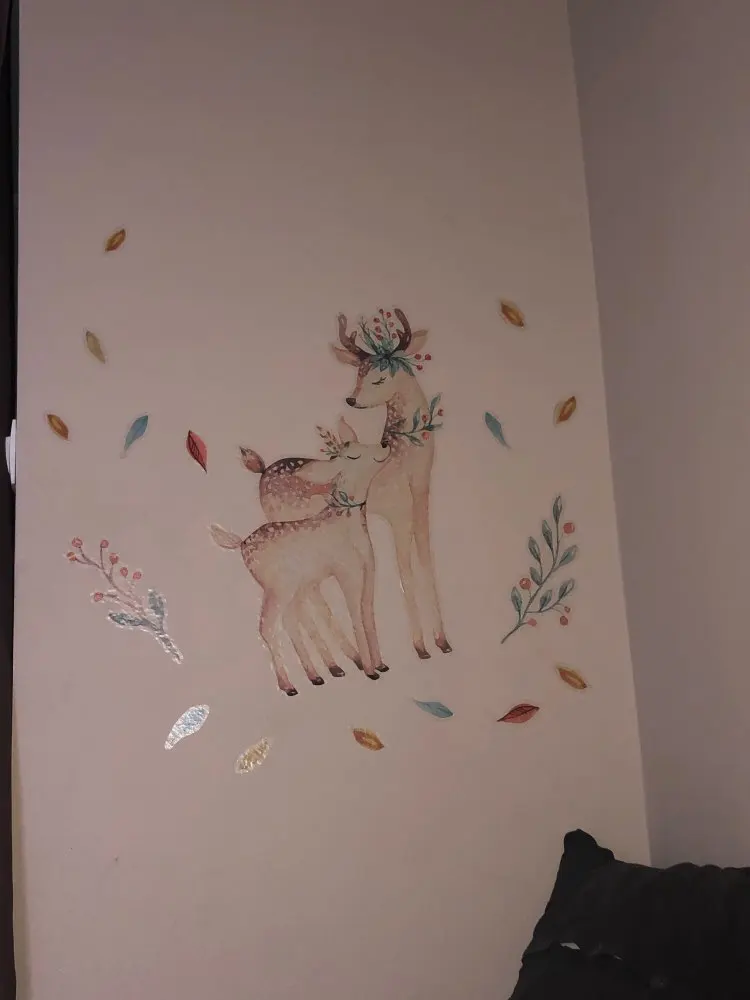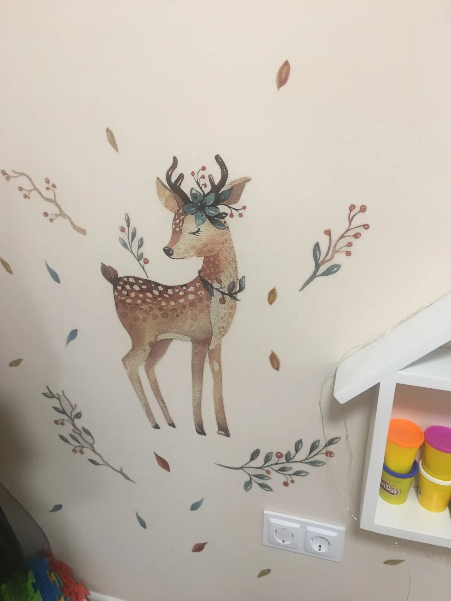 Наклейка пришла немного помятая, но этого не видно на стене. Красивый оленёнок