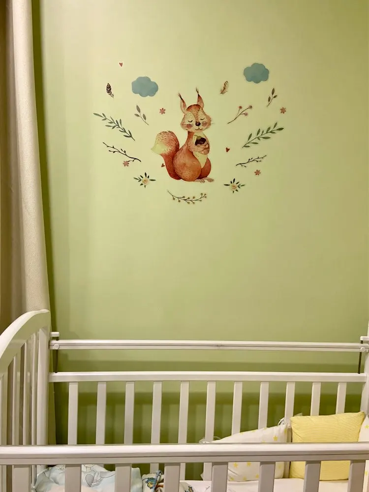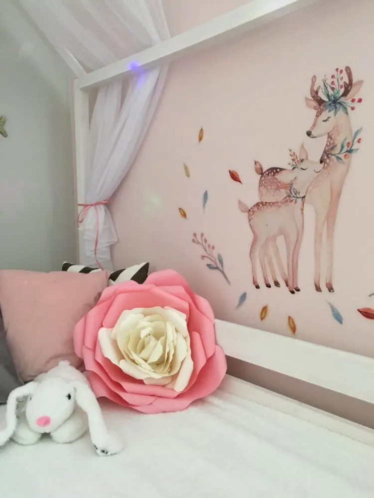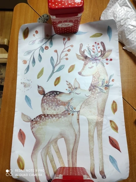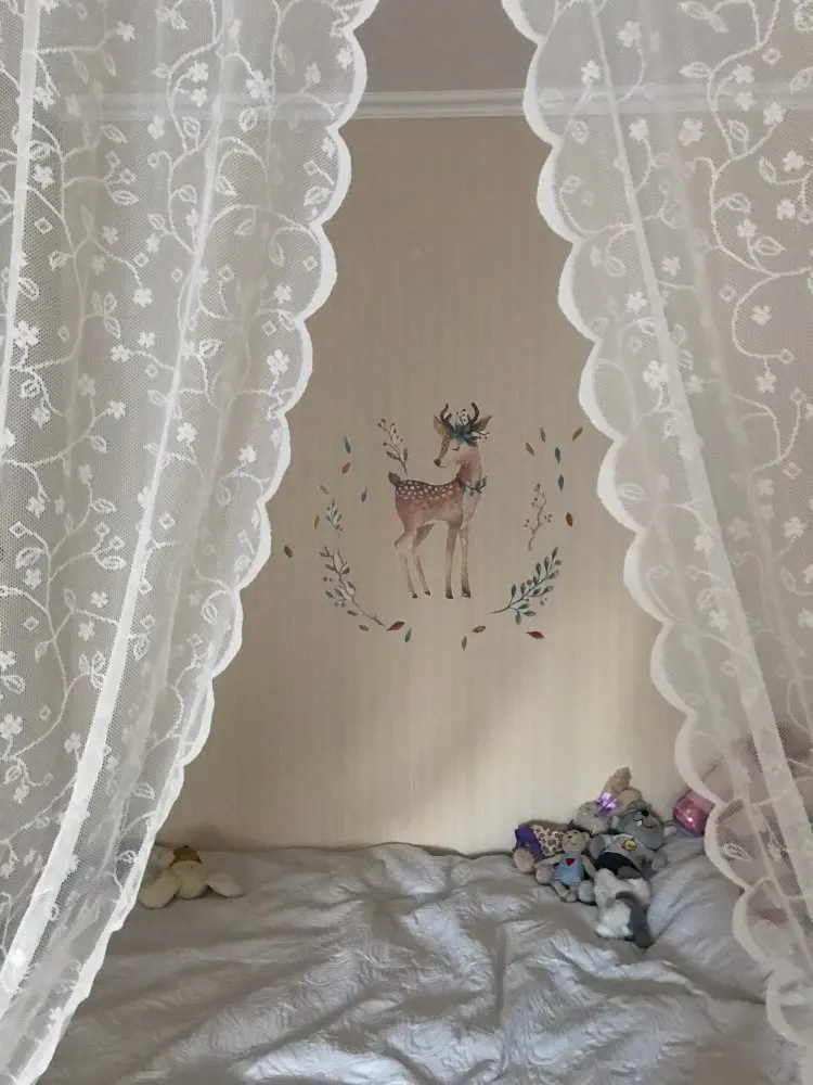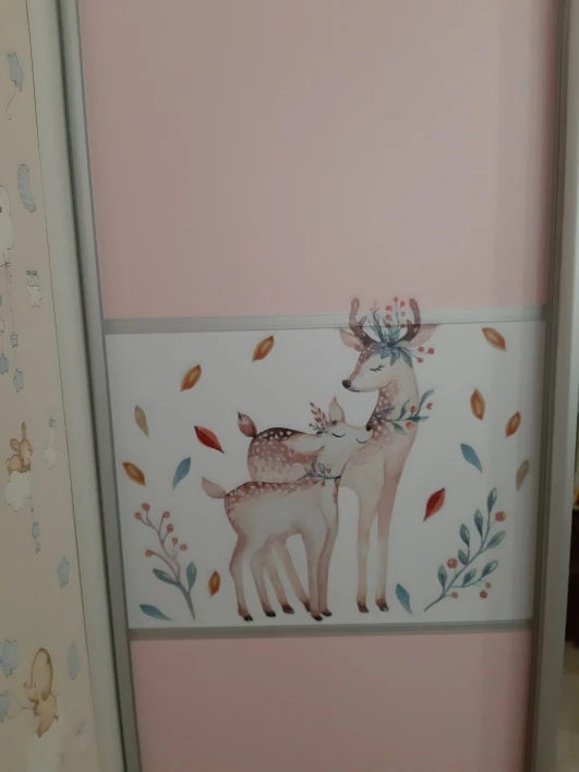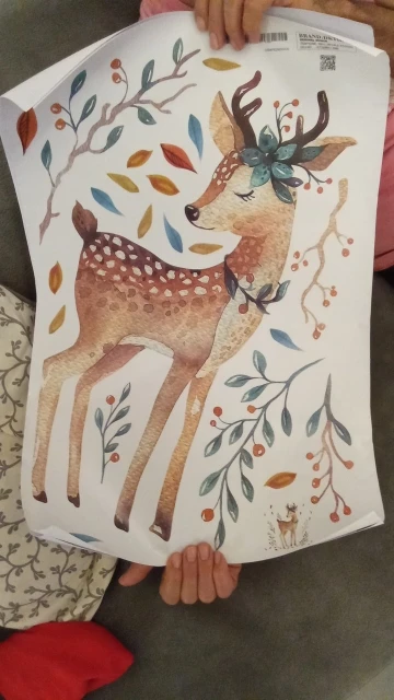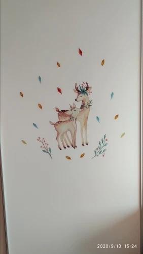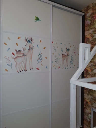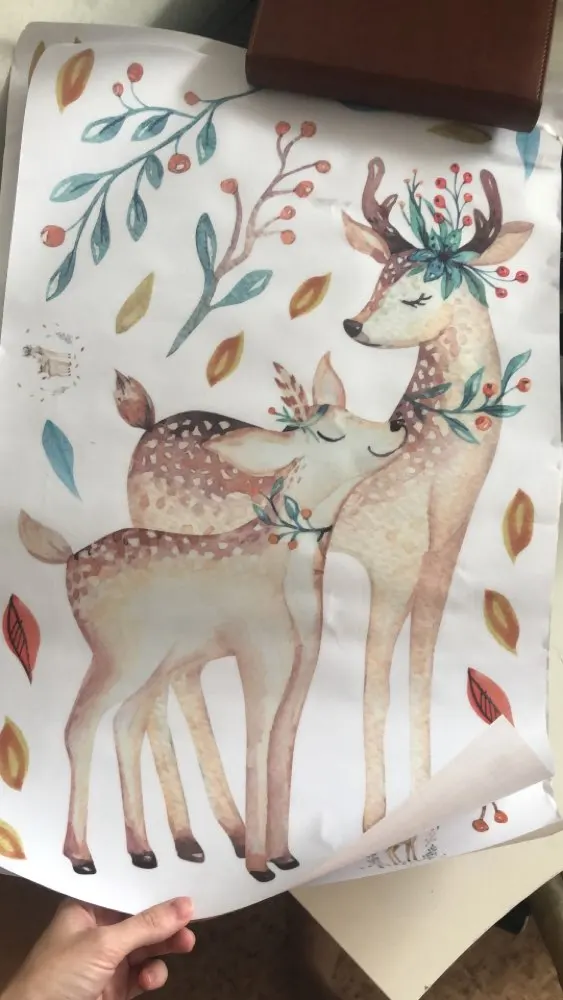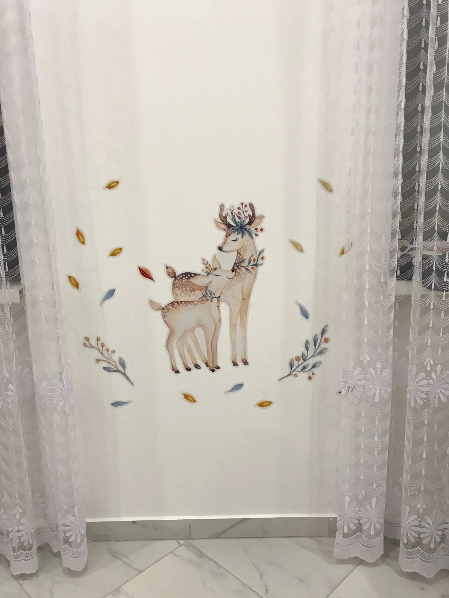 Наклейка пришла немного помятая, но этого не видно на стене. Красивый оленёнок