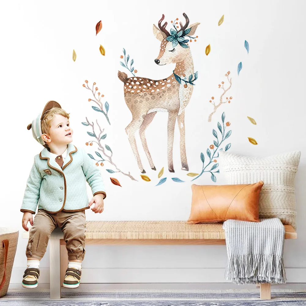 Настенный декор для спальни, наклейки на стену с оленем для детских комнат, наклейки на двери, украшения для дома, гостиной, аксессуары