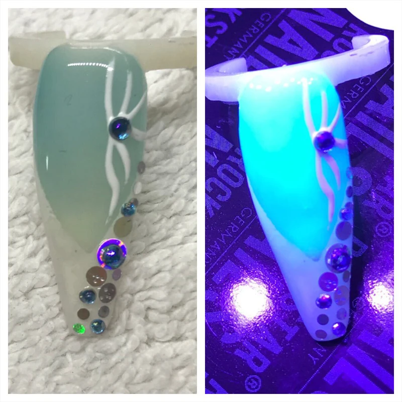 пришёл товар в маленьком пакетике, наполненный менее половины(((( очень жаль, потому что очень хорошо светиться, после нанесения его на ногти. маникюр отличный, светится лучше, чем наклейки с неоновым светом. Доставка долгая, отслеживалась частично, очень большими интервалами