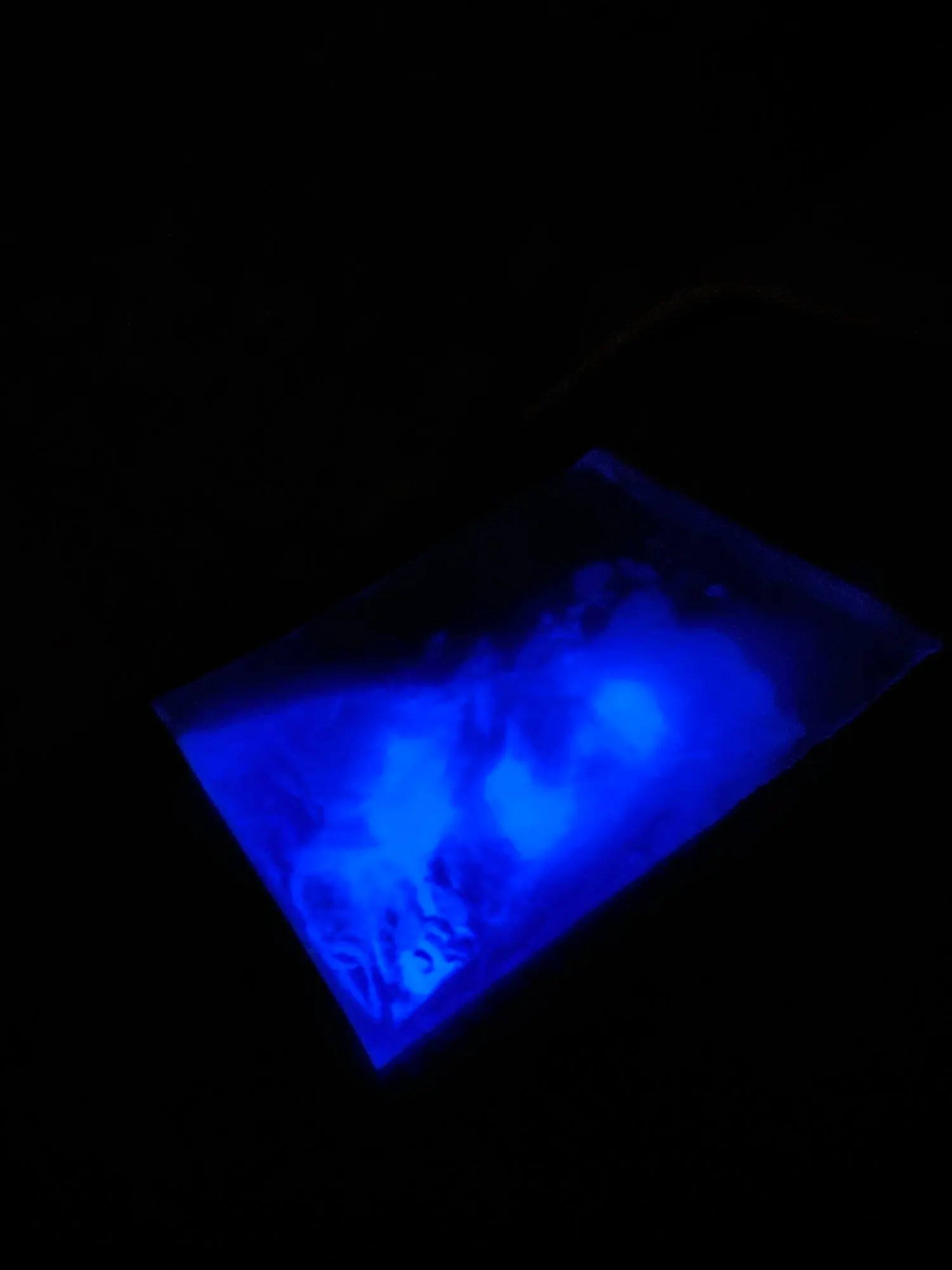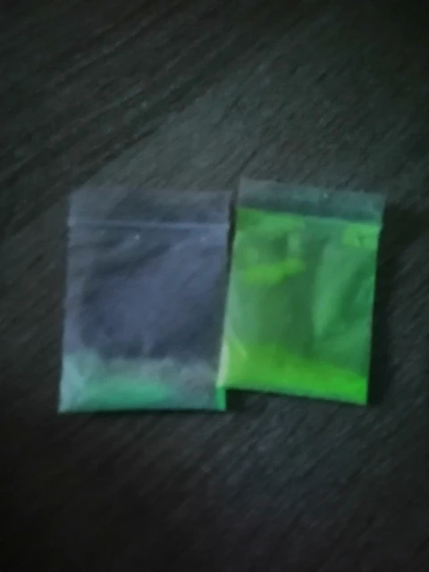 Отличный порошок. Светится в темноте. Использовала для росписи одежды. Добавила в акриловую краску. Смотрится круто. Надо было больше заказывать. Спасибо продавцу. Доставка шла месяц в Астану.