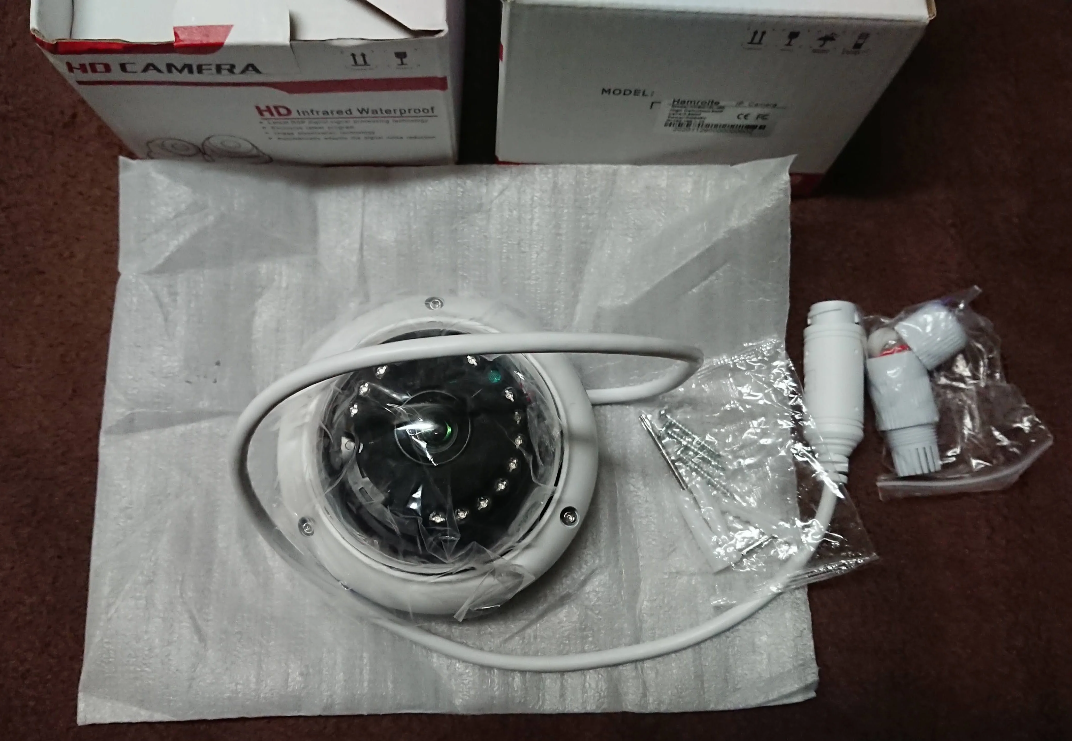 Упаковано нормально, чуть помялось, но не критично, сами камеры целые. Заказывал сразу две камеры, на 2 и 5мп. Единственное на куполе одной камеры прямо по центру царапины, но камеры будет повернута, так что в зону видео не будет входить. Корпуса металлические. Радиатора на проце нет. Пока не проверял в работе, интересно будет ли гало от подсветки.