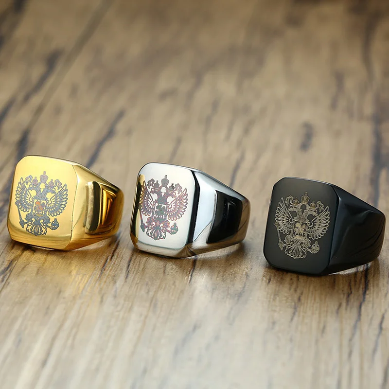 Массивное мужское кольцо Vnox с орлом, Золотое кольцо с квадратным ...