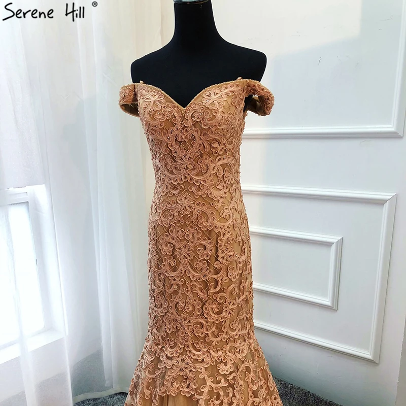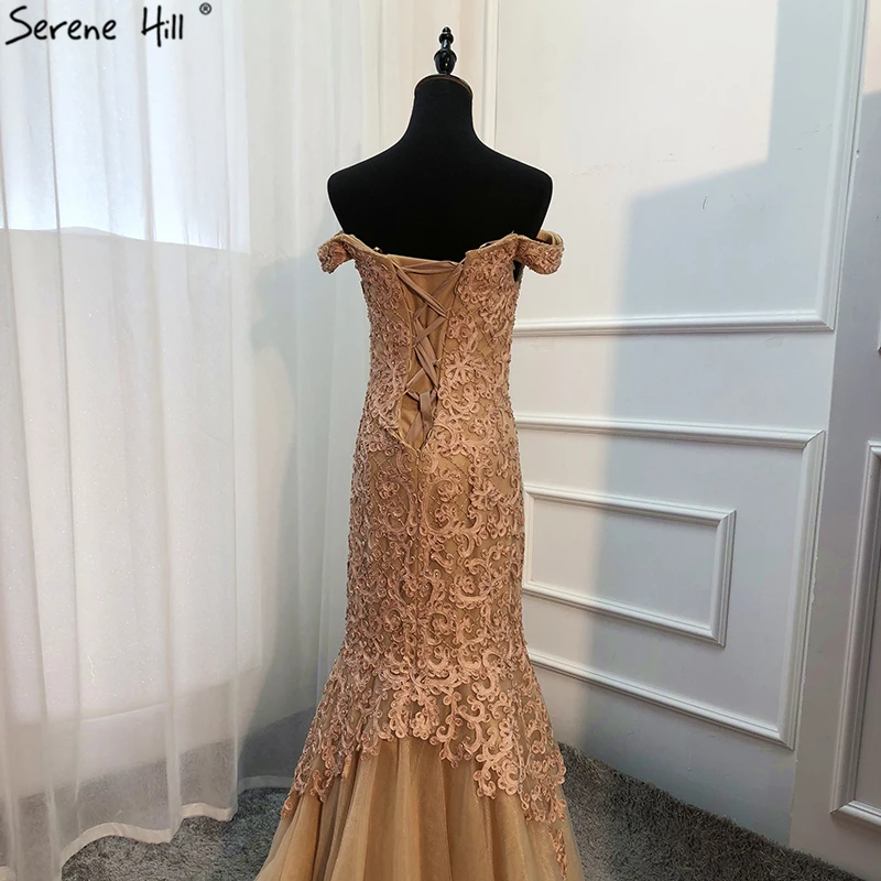 2021 золотые вечерние платья Русалочки с открытыми плечами, бисероплетение, без рукавов, сексуальные модные длинные вечерние платья, настоящая фотография LA6621